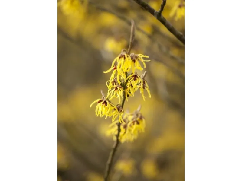 Die Hamamelis Intermedia Arnold Promise wächst buschig und erreicht eine Höhe von 40–60 cm.