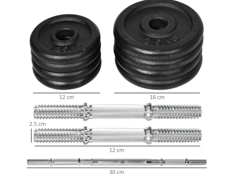 ● Maße Hantelscheibe: Ø16 x 2,5H cm (2,5 kg), Ø12 x 2H cm (1,25 kg)