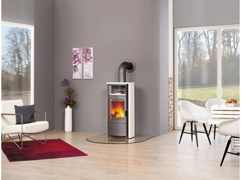 Dank der komfortablen Gussmulde mit Rüttelrost bietet sich der Kaminofen zur Verfeuerung von Scheitholz, Braunkohlebriketts und Steinkohle an. Darüber hinaus hat der Ofen ein praktisches Warmhaltefach über der Brennkammer, in dem Sie zum Beispiel Tee wärmen können.