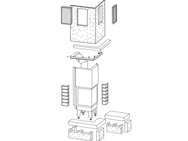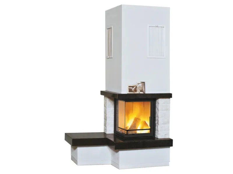 Der Kamin ist ein Selbstbausatz in vorgefertigten Modulteilen, deren Aufbau in der ausführlichen Aufbau- und Bedienungsanleitung anschaulich erklärt wird. Der Ofen besticht durch sein elegantes Aussehen. Die rechte Bank aus echtem Marmor bietet Platz für Deko oder Bilderrahmen.