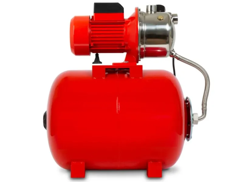 Edelstahl-Pumpengehäuse und lackierter Gusseisen-Druckkessel für Rostschutz und Langlebigkeit.