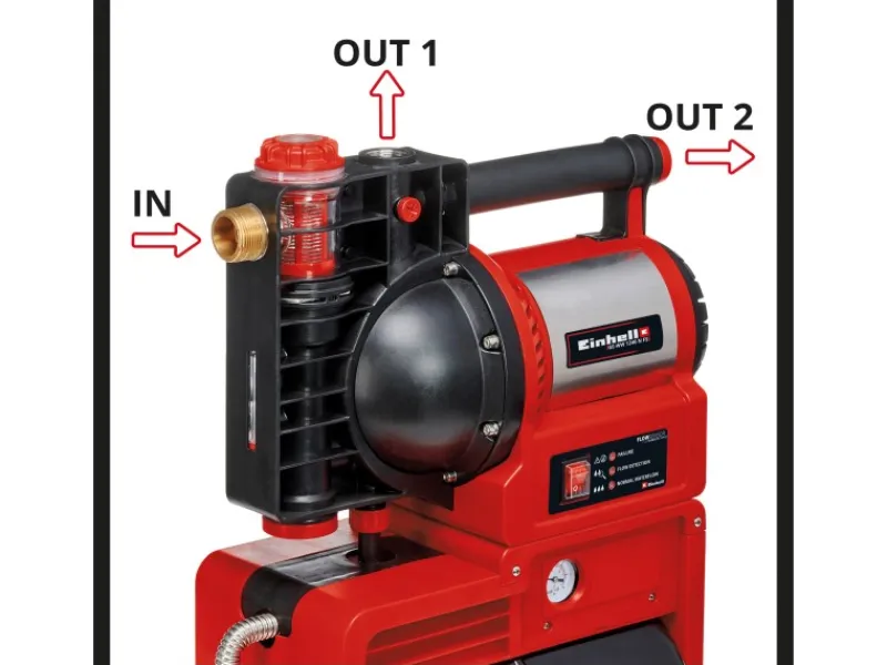 Das Einhell Hauswasserwerk GE-WW 1246 N FS mit 1.200 Watt sichert die Eigenversorgung mit Brauchwasser, einer günstigen Alternative zu Trinkwasser. Statt teurem Leitungswasser wird Nutzwasser aus Zisternen, Brunnen oder Reservoirs für Wascharbeiten und Toilettenspülungen, im Garten zur Bewässerung oder zur Autopflege verwendet. Der Vorteil liegt auf der Hand: Statt wie bei aufwändig aufbereitetem, kostbarem Trinkwasser fallen beim Brauchwasser nicht die selben hohen Kosten für Wasser und Abwasser an. Das Hauswasserwerk in Edelstahloptik verfügt über breite Kontrollmechanismen mit einem An- und Ausschalter, einer Wasserfüllanzeige, Schmutzanzeige und Sauganzeige sowie einen Flow-Sensor mit LED-Anzeige. Eine große Wassereinfüllöffnung gewährt eine einfache Inbetriebnahme. Restlos entleert und damit frostsicher gemacht werden kann das Hauswasserwerk durch die Wasserablassschraube. Geschützt ist das Hauswasserwerk durch eine Trockenlaufsicherung, den Verbrühschutz, einen Thermoschutzschalter sowie einen Vorfilter mit Rückschlagventil. Das Hauswasserwerk verfügt über hochwertige Gleitringdichtungen, einen zweiten, zusätzlichen Druckanschluss sowie langlebige Saug- und Druckanschlüsse aus hochwertigem Metall und einem großzügigen 20-Liter-Tank. Die Lieferung erfolgt inklusive Adapter 1″ (33,3 mm) AG passend für 1″ Saugschläuche.