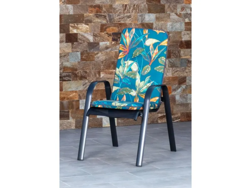 Mit der Auflage sitzen Sie auch an längeren Abenden stets bequem und genießen entspannte Stunden in Ihrem Garten oder auf Ihrem Balkon. Die Auflage ist speziell für Hochlehner-Stühle konzipiert und hat die Abmessungen 116 cm x 44 cm bei einem Gewicht von ca. 0,45 kg, wobei sie rechteckig gefertigt ist. Die hochwertige, 5 cm starke Polsterung sorgt für einen dauerhaft hervorragenden Sitzkomfort.