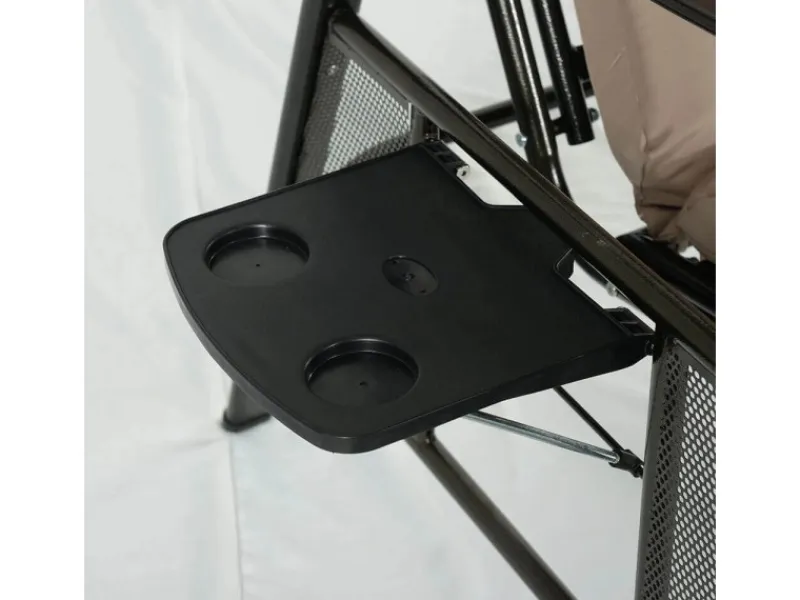 An beiden Seiten ist eine kompakte Ablage angebracht, auf der Snacks, Getränke und ein gutes Buch sicher Platz finden