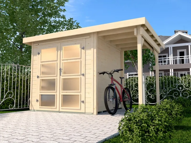Holz-Gartenhaus mit praktischer überdachter Außenfläche