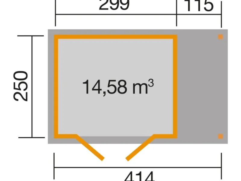 Sockelmaß Haus ohne Außenfläche B x T: 414 x 250 cm