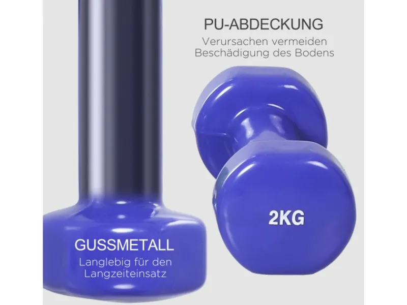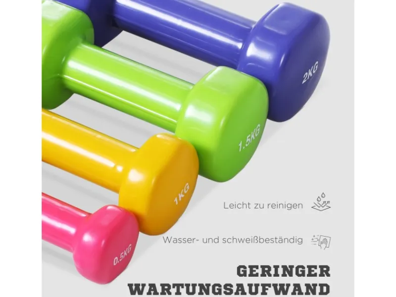 ● Set enthält vier Hanteln in vier verschiedenen Gewichtsausführungen: 0,5 kg, 1 kg, 1,5 kg und 2 kg