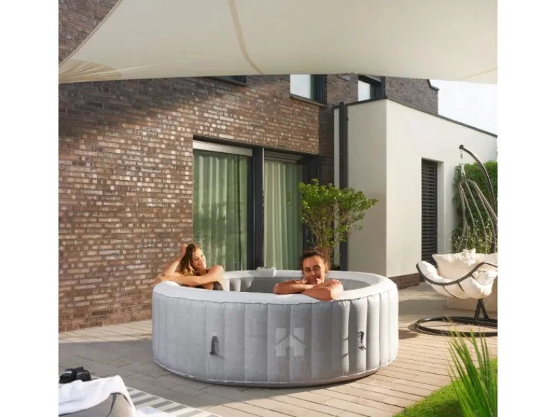 Der Whirlpool ist aus strapazierfähigem, laminiertem PVC mit Aluminiumfolie gefertigt, wodurch der Spa besonders langlebig ist. Das Material ist temperatur- und formbeständig sowie wasserfest und lässt sich hygienisch und leicht reinigen. Daher kann der Schwimmspa sowohl im Innen- und Außenbereich aufgestellt werden. Die isolierende Abdeckung schützt zudem vor Wärmeverlust bei Nichtgebrauch.
