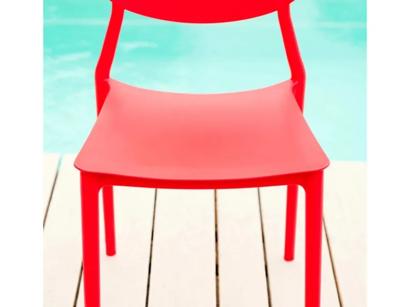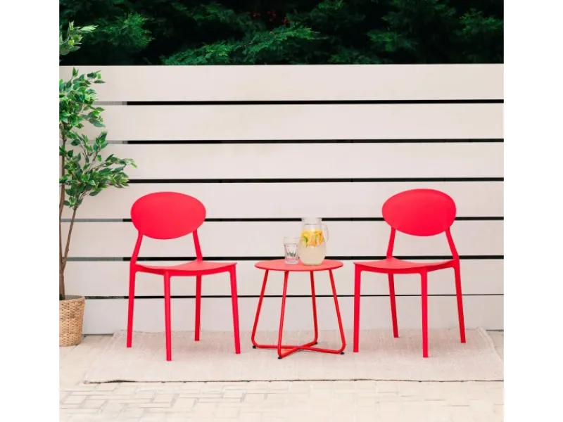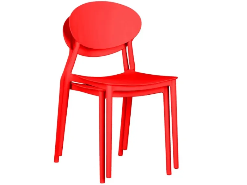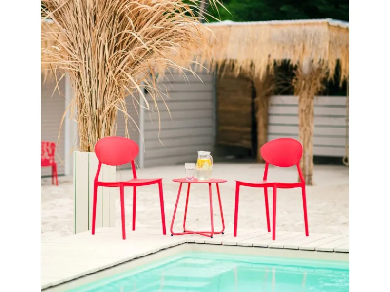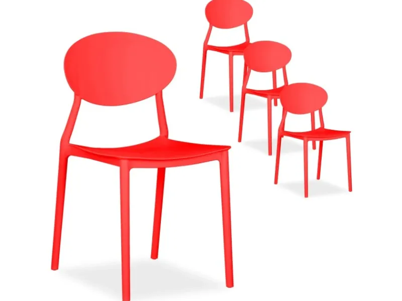 4 moderne Terrassenstühle aus Kunststoff, rot