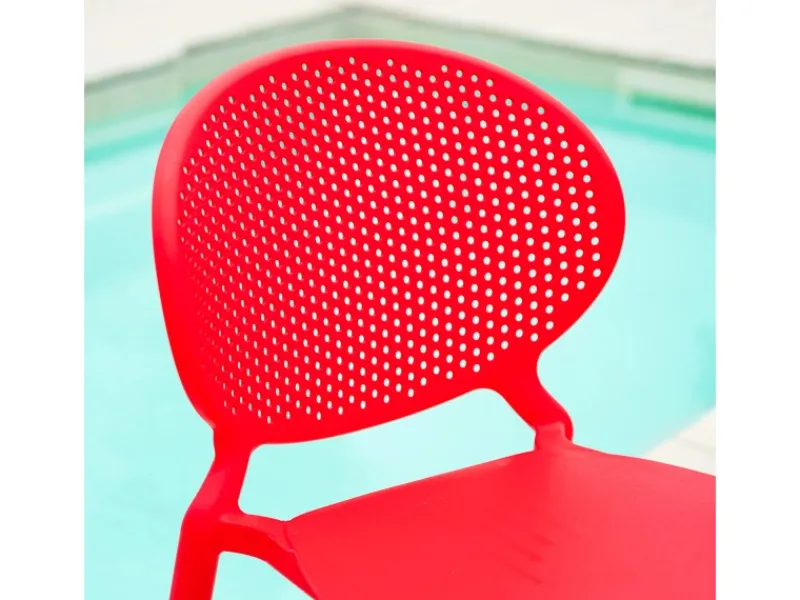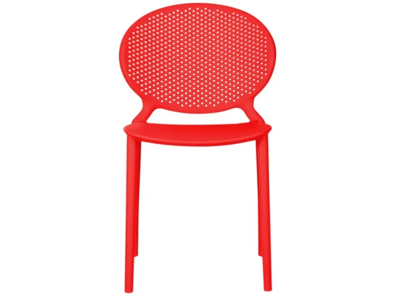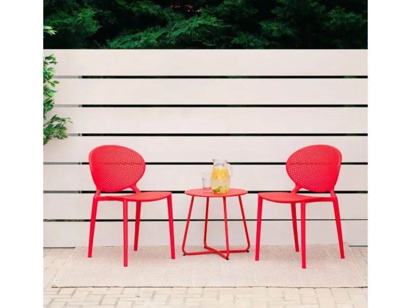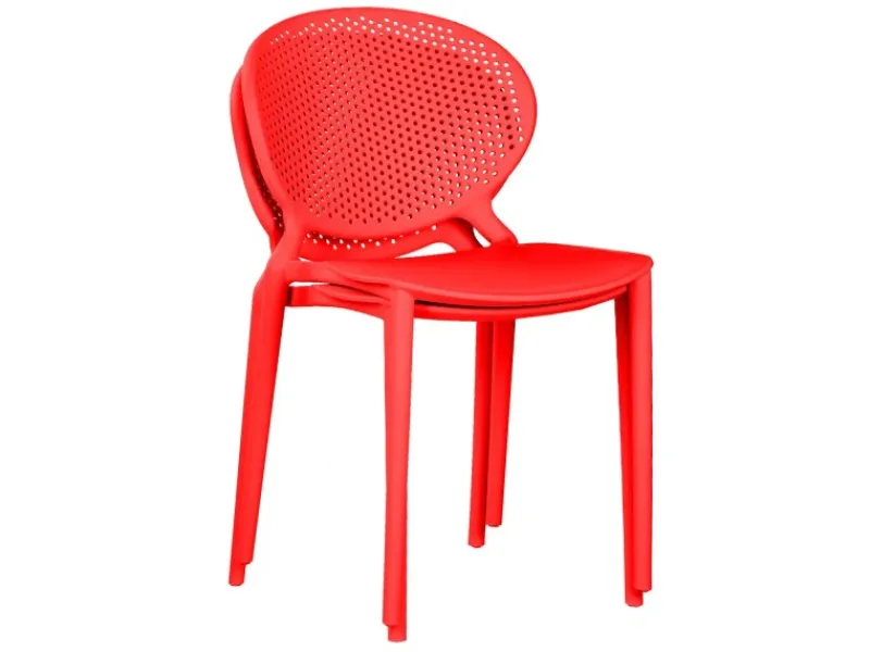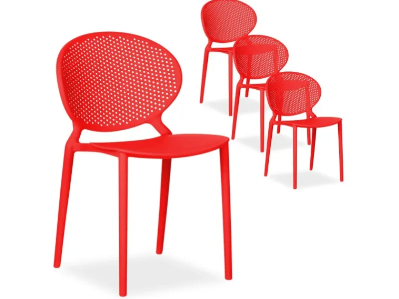 4 moderne Terrassenstühle aus Kunststoff, rot
