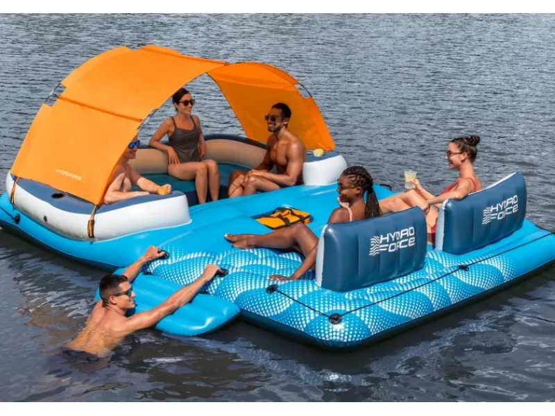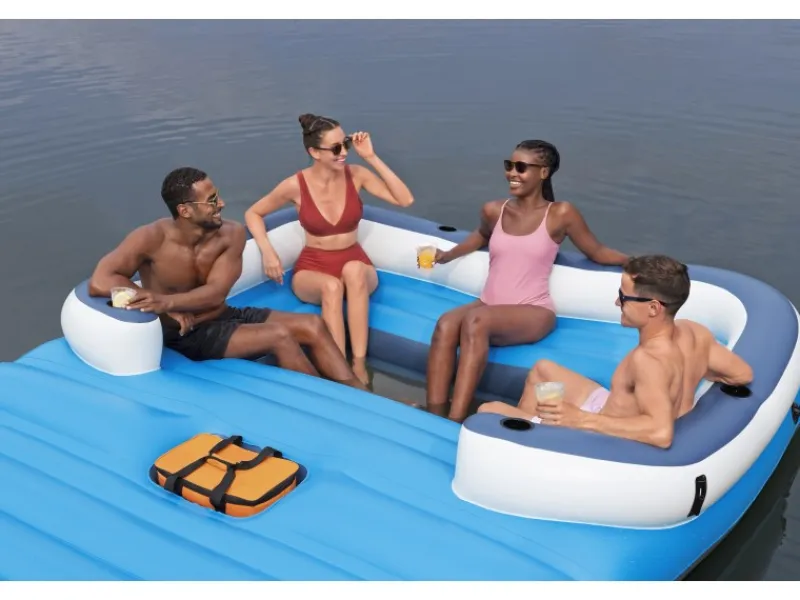 Mach aus jedem sonnigen Tag ein Abenteuer mit der Bestway Hydro Force 6 Personen Badeinsel Tropical Breeze. Mit den Maßen von 373 cm x 264 cm x 73 cm bietet diese beeindruckende Badeinsel ausreichend Platz für Familie und Freunde. Ob auf dem See, am Strand oder im eigenen Pool erlebe unbeschwerte Stunden voller Entspannung und Spaß.