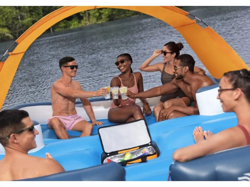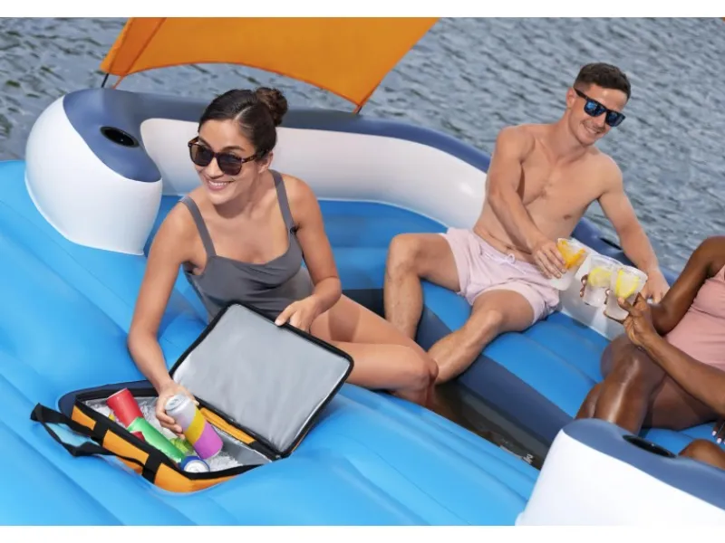 Erlebe unvergessliche Momente auf dem Wasser mit der Bestway Hydro Force 6 Personen Badeinsel Tropical Breeze der perfekte Begleiter für sonnige Tage und fröhliche Gemeinschaften!