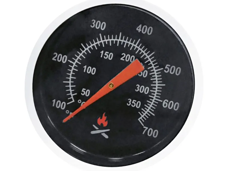 Das Jamestown Ersatz-Deckelthermometer eignet sich für den Jamestown Holzkohle-Smoker Aldon mit Deckelthermometer. Es zeigt Temperaturen innerhalb des Deckels bis zu 350 °C an und besteht aus Edelstahl. Für die Montage wird das Thermometer in die Deckelfassung eingesetzt und angeschraubt.
