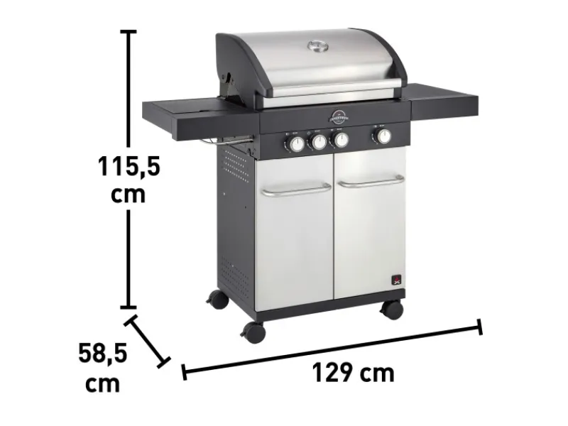 Kompakter Grillwagen mit 3 leistungsstarken Edelstahl-Brennern