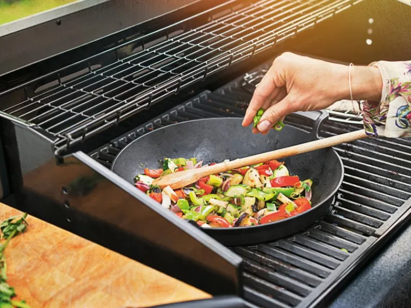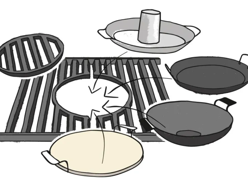 Erweiterbar durch modulare Einsätze – zum Braten, Woken und Pizzabacken