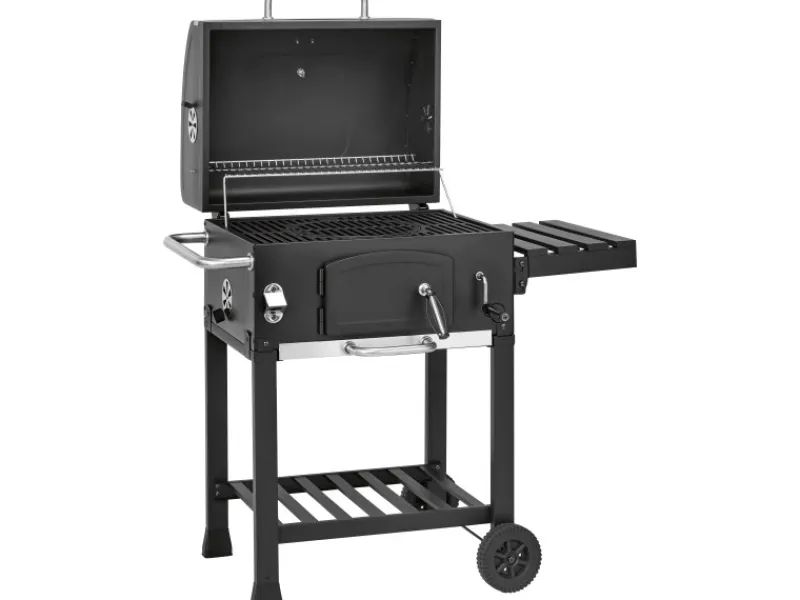 Erlebe genussvolle Grillmomente mit dem Jamestown Holzkohlegrill Jaxon mit modularem Grillrost. Dieser vielseitige Grill ist dein idealer Begleiter für gemütliche Grillabende und spannende Räucherprojekte. Dank seiner Rollen ist der Grill fahrbar und lässt sich flexibel an jeden gewünschten Ort bewegen. Herzstück ist das modulare gusseiserne Grillrost, das dir vielseitige Möglichkeiten für die Zubereitung deiner Speisen bietet. Mit einer großzügigen Gesamtgrillfläche von 57 cm x 41,5 cm (B x T) hast du ausreichend Platz für Steaks, Würstchen und Gemüse. Die robuste Konstruktion aus Stahl garantiert Langlebigkeit und Stabilität, damit du viele Jahre Freude an deinem Jaxon hast.