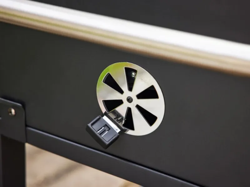 Stufenlos verstellbare Kohlewanne und Lüftungsschieber zur Hitzesteuerung