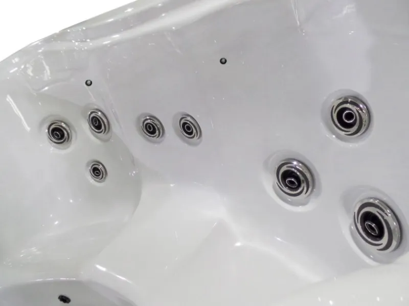Villa Salome besteht aus hochwertigem Acryl sowie glasfaserverstärktem Kunststoff und Aluminium. Die Wanne ist auf einem Aluminiumrahmen aufgebaut. Der Whirlpool ist von der Bodenseite komplett verschlossen. Für die Steuerung wird Balboa oder Gecko Technik vom Marktführer verwendet. Die Massagedüsen beleben Ihren Körper und geben ihm neue Energie. Die Massagedüsen können gezielt Muskelverspannungen lockern und Stress abbauen. Entspannen Sie zu Hause.