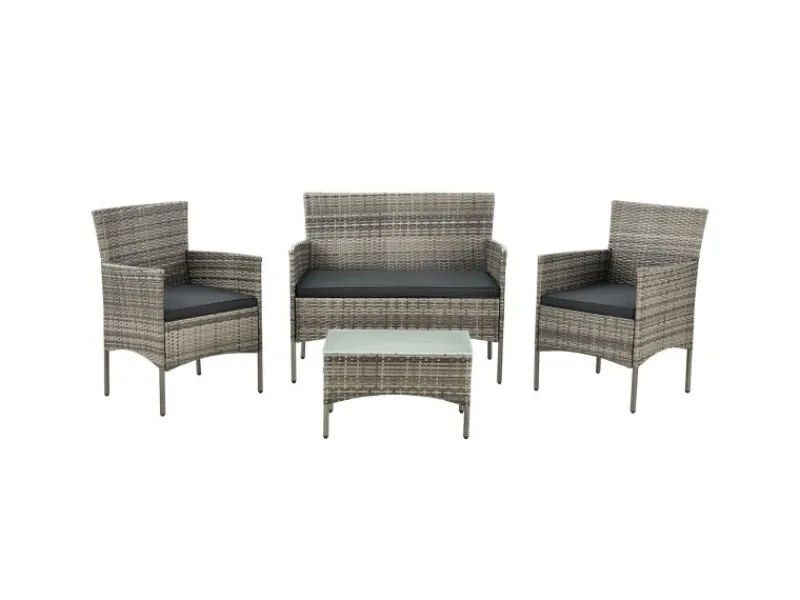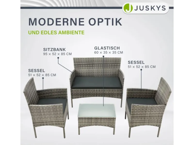 Ob Pärchenabend oder Kaffeetrinken mit der Familie, die Gartengarnitur bietet eine Sitzecke für eine kleine Runde mit 4 Personen. Die Garnitur zum Sitzen besteht aus 2 Stühlen und einem Sofa mit Arm- und Rückenlehne. Es ist besonders als Rattan Balkonmöbel geeignet, weil es platzsparend ist.
