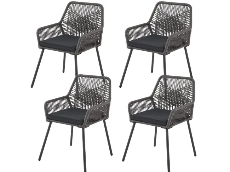 Ob im Garten, auf Terrasse, Balkon oder im Wintergarten – die Stühle mit modernem Geflecht aus Seilen passen ideal in stilvolle Wohnbereiche.
