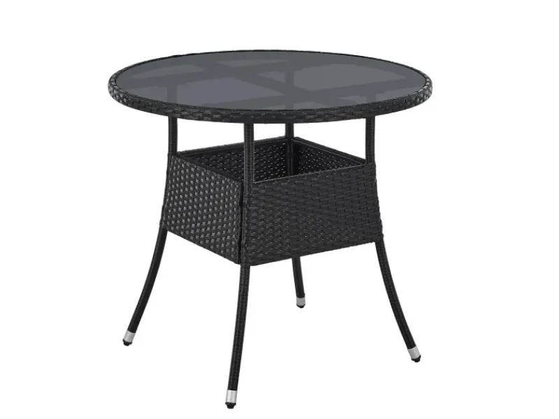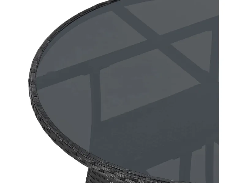 Aus wetterbeständigem Polyrattan, mit einem pulverbeschichteten Stahl-Gestell und einer Platte aus Sicherheitsglas, ist der Tisch widerstandsfähig und langlebig.
