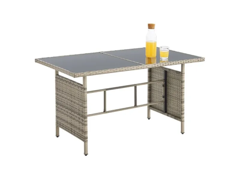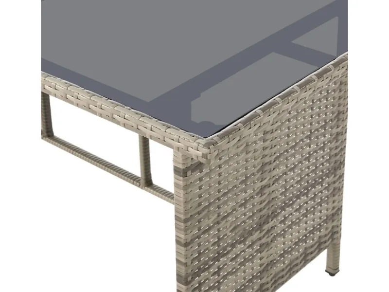 Die Tischplatte aus gehärtetem Glas verleiht dem Gartenmöbelset einen eleganten Look. Platzieren Sie hier Snacks und Getränke, während Sie die Sonne genießen.