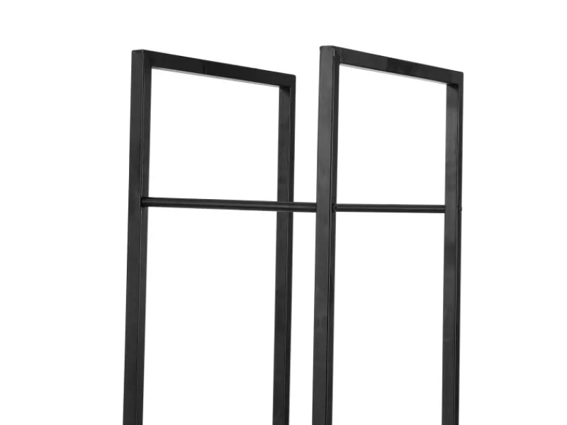 Das schwarze Metall des Kaminholzständers ist stabil und langlebig.