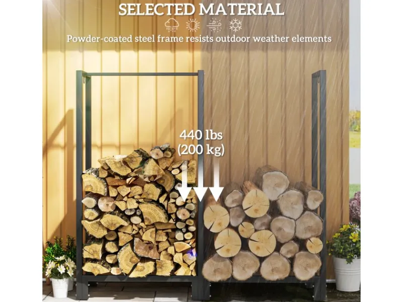 Die Gesamtabmessungen des Brennholzregals betragen 123L x 32B x 115H cm