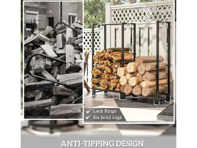 ● Drei Verriegelungsringe und sechs Beine des Kaminholzregals für mehr Stabilität