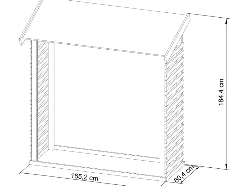 Der Kaminholzunterstand aus 18 mm starkem Holz hat die Maße 165,2 cm x 60,4 cm x 184,4 cm (B x T x H). Er eignet sich hervorragend zur trockenen Lagerung Ihres Kaminholzes.