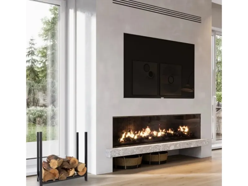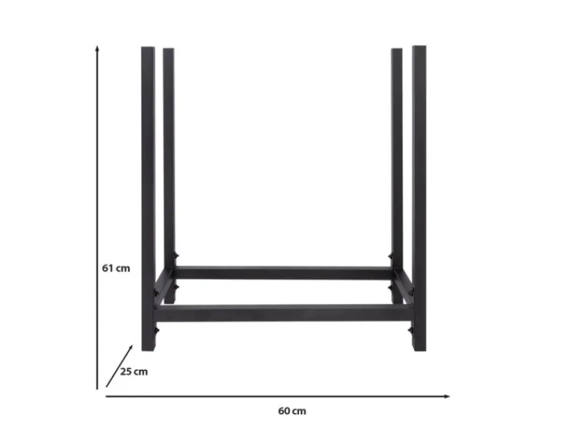 Kaminholzregal Lesbos – Feuer und Flamme für ein stylisches DesignDer kalten Jahreszeit entfliehen und es sich zuhause bei Tee oder heißer Schokolade vor dem Kamin gemütlich machen. Wind und Wetter einfach sein lassen – der nächste Abend mit Familie oder Freunden kann kommen. Was hierbei noch fehlt? Mit unserem Kaminholzregal in modernem Design ist nicht nur eine praktische, sondern dekorative Möglichkeit zum Lagern von Brennholz gefunden.Präzise Brennholzaufbewahrung leicht gemachtSie wollen nicht ständig den Weg in den Keller oder zum Baumarkt antreten, um Ihren Vorrat an Brennholz aufzufüllen? Aber ein Muss: Ordnung sowie Glanz in Ihrem Innen- oder Außenbereich. Unser hochwertiges Kaminholzregal bietet das passende Maß an Stauraum. Robustheit, Rost- und Witterungsbeständigkeit trifft auf schlichtes, aber stylisches Design. Im Nu montiert und eine notwendige Ergänzung für Ihre Feuerstelle, die beim nächsten Mal garantiert von allen Besuchern als Highlight bestaunt wird.Zeitlose Zimmerdekoration für Ihren WohnbereichDas Kaminholzregal ist nicht nur der Begleiter für eine spielend leichte Lagerung von Brennholz. Es stellt sich ebenso als die geeignete Lösung für eine Verschönerung Ihres persönlichen Wohlfühlbereichs heraus. Bodenfeuchtigkeit macht Ihrem Brennholz den Gar aus? Da kann diese Designvariante nur darüber lachen. Eine erhöhte Ablage bietet passenden Schutz und garantiert ein warmes Kaminfeuer auch bei nassem Untergrund.Kaminholzregal Lesbos – Produkteigenschaften:Material: Eisen + PulverbeschichtungProduktmaße: 60 x 25 x 61 cmAusreichend StauraumStabil und belastbarPlatzsparendRost- und witterungsbeständigFeuerfestEinfache MontageAuch für Außenbereich geeignet