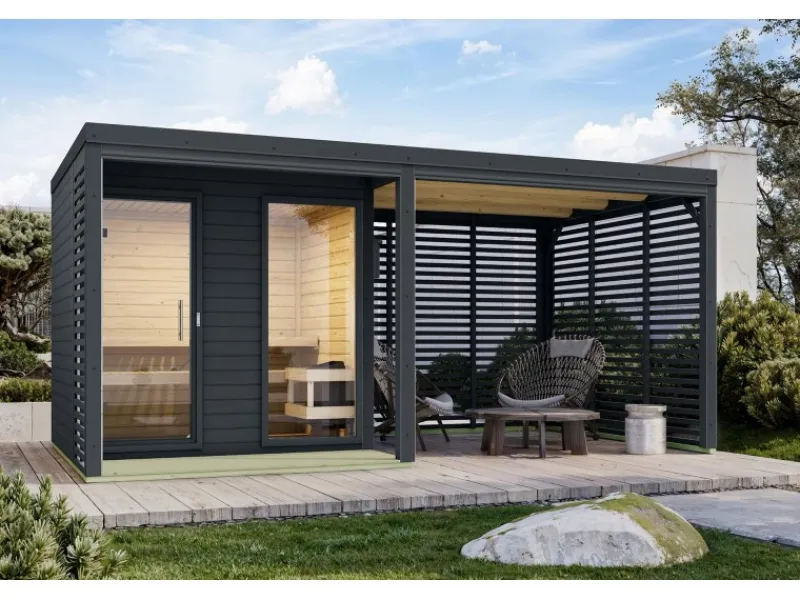 Es ist die perfekte Ergänzung für alle, die ihre Sauna nicht nur als Rückzugsort, sondern als echten Lebensraum im Freien nutzen möchten, wettergeschützt, ästhetisch und vielseitig. Machen Sie mehr aus Ihrer Sauna, mit einem Anbaudach, das Raum für Ihre ganz persönliche Auszeit schafft.