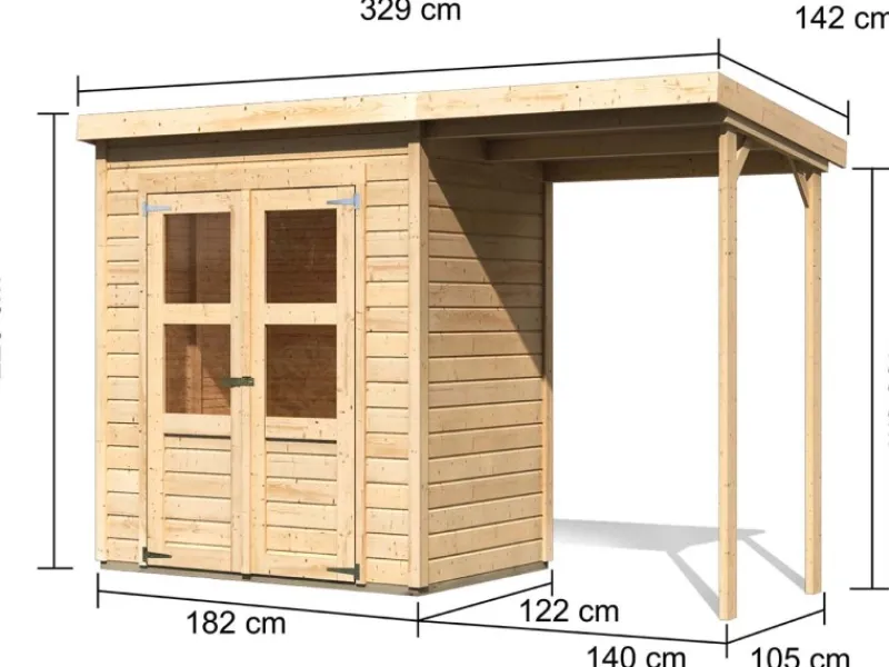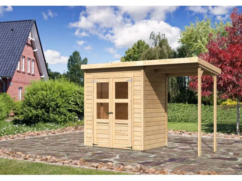 Holz-Gartenhaus mit praktischer überdachter Außenfläche