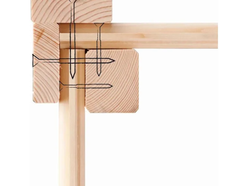 Das Gartenhaus ist aus unbehandeltem Holz im Steck- & Schraubsystem gefertigt. Durch die naturbelassene Oberfläche bleibt eine natürliche Optik mit Holzmaserung erhalten. Zum Schutz vor Witterungseinflüssen sollte die Oberfläche individuell mit einer Lackierung oder Lasierung veredelt werden. Für die Montage der Gartenlaube müssen Sie kein Profi-Handwerker sein. Dank des praktischen Steck-Schraubsystems kann die Montage problemlos durchgeführt werden und die einzelnen Teile lassen sich einfach verbinden. Das Haus verfügt über eine stabile Konstruktion, mit einer Wandstärke von 14 mm. Die maximalen Schneelast des Pultdachs liegt bei 75 kg/m. Die Dacheindeckung ist separat erhältlich.
