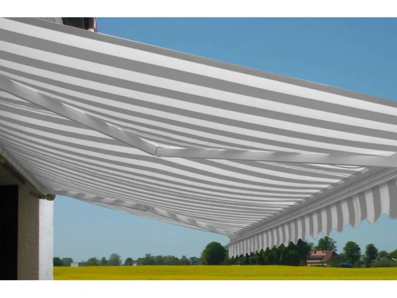 Kassetten-Markise H124 mit Volant 5x3m Acryl Grau/Weiß*MCW Hot