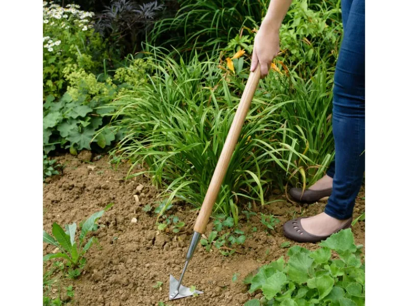 Die Kent & Stowe Ziehhacke mit Langstiel eignet sich dank ihres Hackenaufsatzes und des langen Stiels hervorragend zur rückenschonenden Unkrautentfernung und zum Furchenziehen.