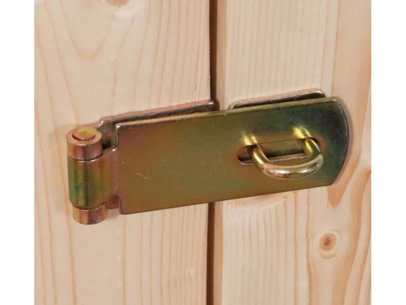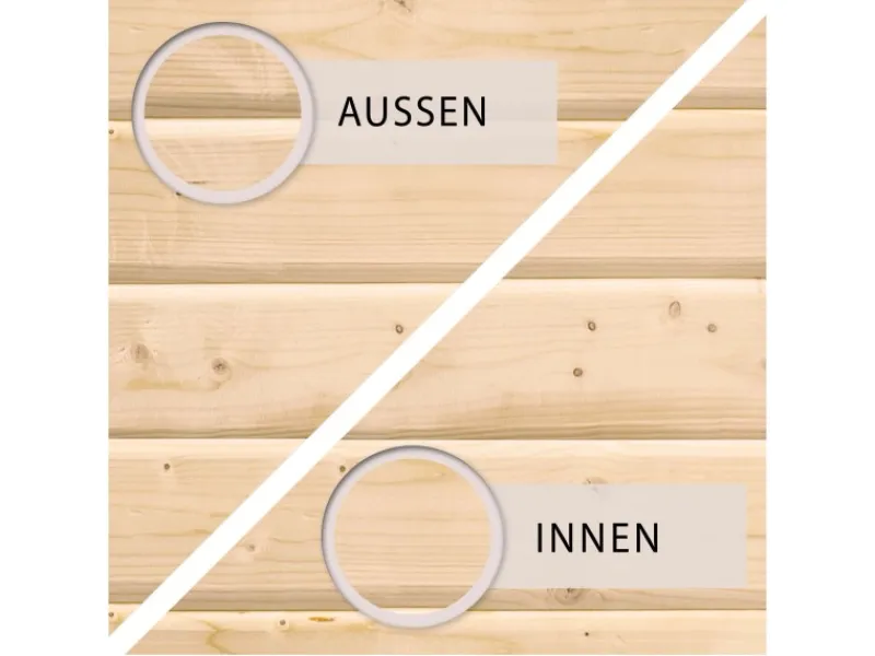Das Gartenhaus ist in einem zeitlosen und klassischen Design gestaltet. Durch die unbehandelte Oberfläche aus Nadelholz bleibt die natürliche Optik mit Holzmaserung erhalten. Zum Schutz vor Witterungseinflüssen kann die Oberfläche individuell mit einer Lackierung oder Lasierung veredelt werden. Die Türen des Holzgartenhauses verfügen über Lichtausschnitt und Beschläge zum Anbringen eines Vorhängeschlosses.