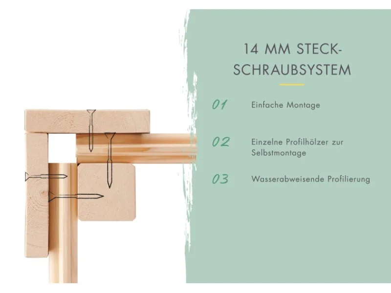 Durch die Kesseldruckimprägnierung der Bodenbalken sind diese bereits vor Witterungseinflüssen und holzzersetzenden Pilzen geschützt. Die praktische, vormontierte Tür sorgt mit ihren großzügigen Abmessungen und dem Massivholzrahmen für einen einfachen Zutritt zum Gartenhaus und schützt den Inhalt zudem effektiv vor unbefugtem Zugriff. Die Verglasung der Lichtausschnitte ermöglicht einen großzügigen Tageslichteinfall.