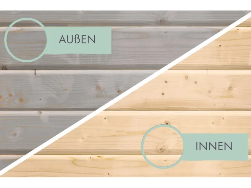 Die praktische, vormontierte Tür sorgt mit ihren großzügigen Abmessungen und dem Massivholzrahmen für einen einfachen Zutritt zum Gartenhaus und schützt den Inhalt zudem effektiv vor unbefugtem Zugriff. Die Verglasung der Lichtausschnitte ermöglicht einen großzügigen Tageslichteinfall.