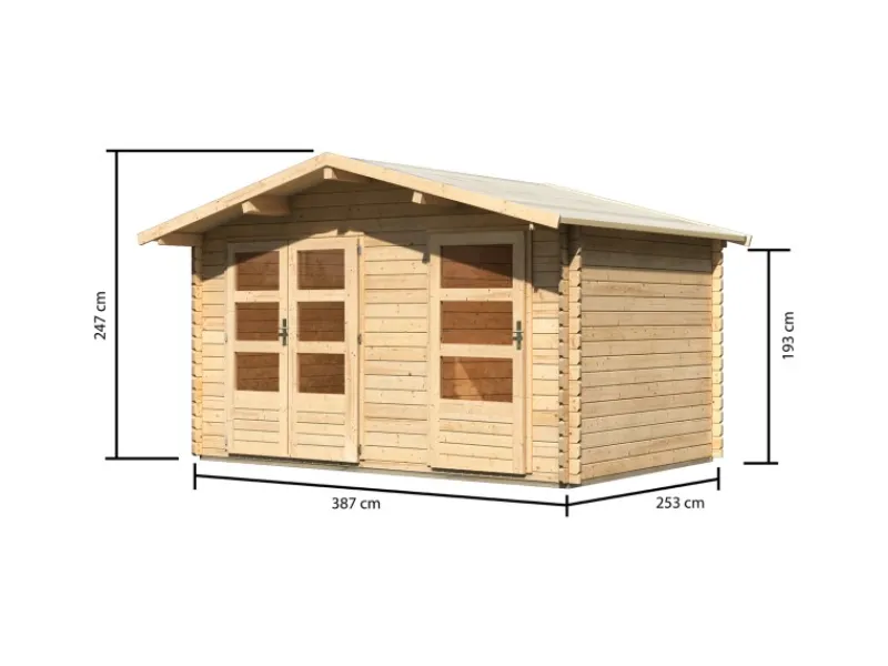 Das Gartenhaus überzeugt durch sein klassisches Design und ist dabei in schlichtem Natur gehalten. Es eignet sich zum Verweilen, als Gartenpavillon, Geräteschuppen oder Freizeithaus.