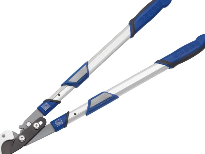 Die LUX-TOOLS Amboss Astschere eignet sich optimal für den Schnitt von Trocken- und Frischholz. Mit der antihaftbeschichteten Klinge können Äste bis maximal 42 mm Durchmesser geschnitten werden. Hierbei reduziert sich der Kraftaufwand beim Schneiden, dank des Getriebes, um bis zu 30 %. Für das Schneiden an höheren Stellen können die teleskopierbaren Griffe von 680 mm bis 930 mm Gesamtlänge der Schere eingestellt werden. Zusätzliche Sicherheit bieten die ovalen, sehr stabilen Aluminiumgriffe mit gut ausgeformten Griffstücken in 2-Komponenten-Ausführung.