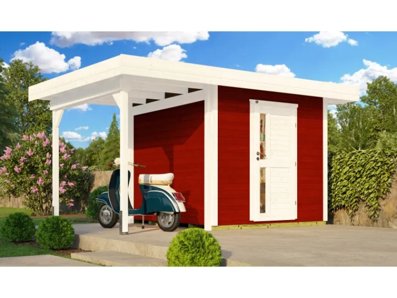Das Gartenhaus überzeugt durch sein modernes Design und ist dabei in der Farbe Schwedenrot gehalten. Es eignet sich für den universellen Einsatz als Geräteschuppen, Gartenpavillon oder Freizeithaus.