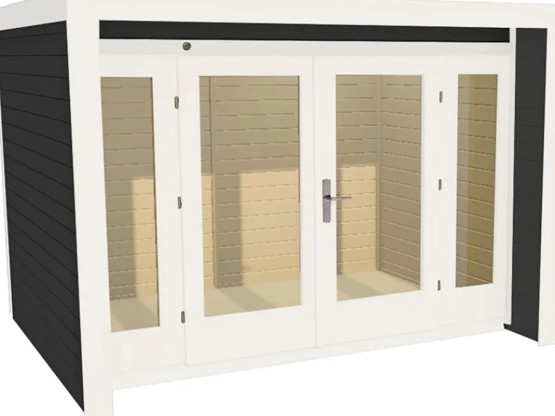 Das Gartenhaus aus Holz überzeugt durch sein modernes Design und ist dabei in schlichtem Anthrazit gehalten. Es eignet sich für den universellen Einsatz als Geräteschuppen, Gartenpavillon oder Freizeithaus.