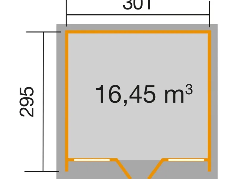 Sockelmaß Haus ohne Außenfläche B x T: 305 x 295 cm