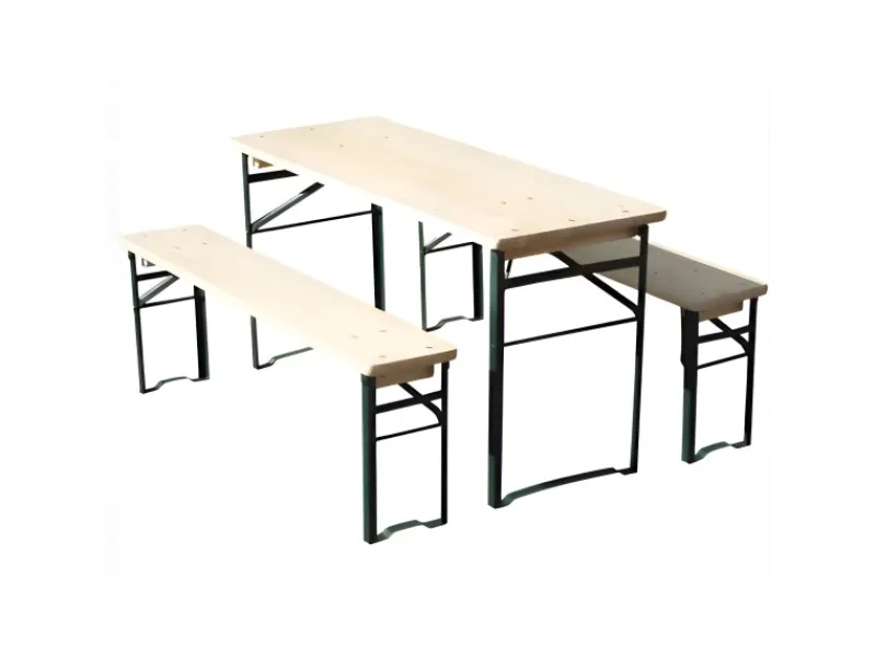 Die Garnitur ist eine stabile und flexibel einsetzbare Sitzgelegenheit zu Kindergeburtstagen, Gartenpartys oder Picknick-Ausflügen die sich kinderleicht zusammenklappen und platzsparend verstauen lässt.