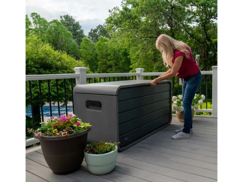 Wenn du deine Gartenutensilien schnell und jederzeit griffbereit verstauen möchtest, ist die Gartenbox von Lifetime die perfekte Wahl für dich. Mit ihrem modernen Design wird die vielseitige Kissenbox nicht nur zu einem praktischen Aufbewahrungshelfer, sondern auch zu einem stilvollen Blickfang in deinem Garten. Nutze die Vorteile des flexiblen Lagerns und setze ein Statement in Sachen Wohnstil.