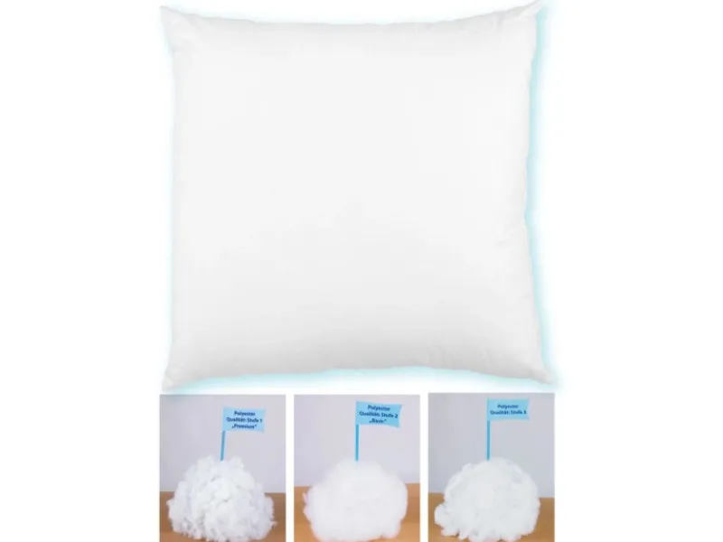 Die Premium – Polyesterkissen sind mit Synthetikfaser der Klasse 1 gefüllt. Die Faser passt sich automatisch der Körperform an und können kaum verklumpen . Trotz des gleichen Gewichts wie bei dem Polyesterfüllkissen wirkt das Premium Polyesterkissen doppelt so stark gefüllt. Auch die Premiumfüllung ist bestens für Allergiker geeignet. Der Kissenbezug besteht zu 100% Polypropylen.