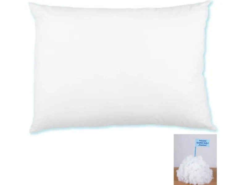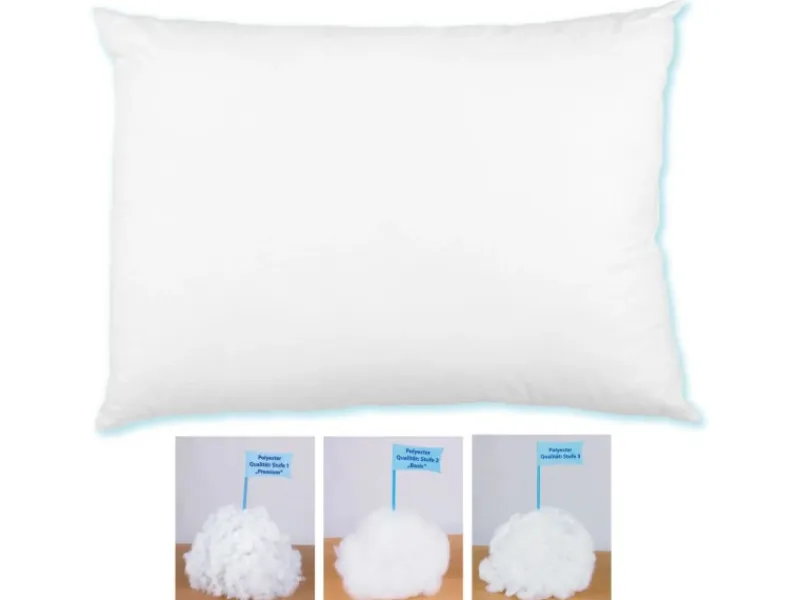 Die Premium – Polyesterkissen sind mit Synthetikfaser der Klasse 1 gefüllt. Die Faser passt sich automatisch der Körperform an und können kaum verklumpen . Trotz des gleichen Gewichts wie bei dem Polyesterfüllkissen wirkt das Premium Polyesterkissen doppelt so stark gefüllt. Auch die Premiumfüllung ist bestens für Allergiker geeignet. Der Kissenbezug besteht zu 100% Polypropylen.