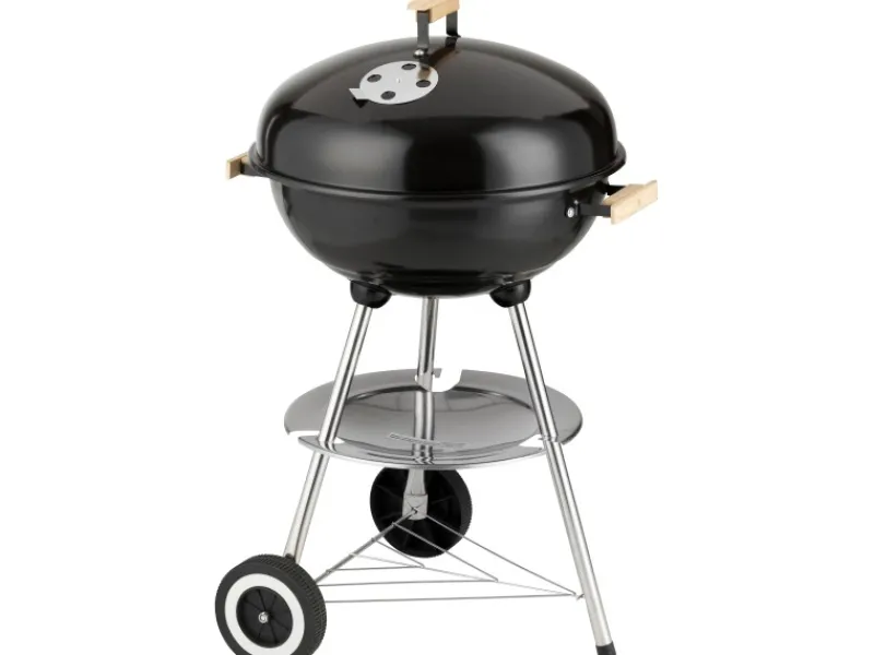 Der Activa Kugelgrill Montenegro verfügt über einen verchromten Grillrost mit einer Fläche von 44 cm. Die beiden Kohleteiler ermöglichen auch indirektes Grillen. Mit Hilfe der Luftregulierung auf der emaillierten Haube lässt sich die Luftzufuhr einfach verändern. Durch die beiden Griffe an den Seiten der ebenfalls emaillierten Feuerwanne lässt sich der Grill einfach tragen. Durch die angebrachten Räder ist der Grill auch leicht fahrbar.