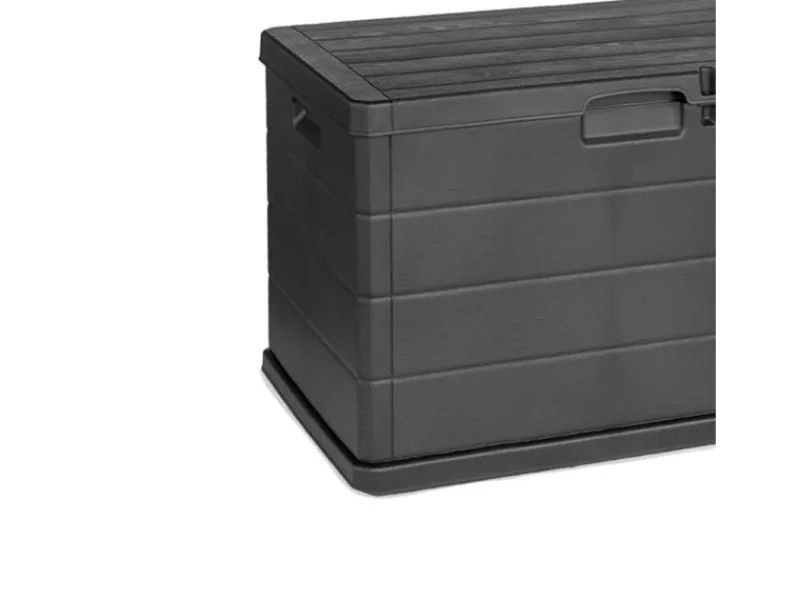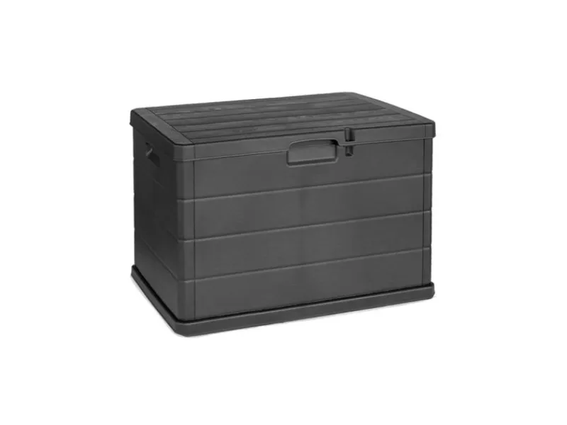 Mit einem großzügigen Volumen von 170 Litern bietet sie ausreichend Platz für Ihre Polsterauflagen und Gartenutensilien.Technische DatenAußenmaße B 78 x T 55 x H 52 cmVolumen 170 LiterGewicht 6,4 kgProdukt DetailsKomplett aus hochwertigem Kunststoff kein Streichen, kein Rost!Stabil und langlebig auch als Sitzbank für 1 Personen nutzbar.Wasserdicht schützt Ihre Auflagen vor Nässe und Schmutz.Abschließbar für zusätzliche Sicherheit (Vorhängeschloss nicht im Lieferumfang enthalten).Schnell und leicht montierbar Lieferung erfolgt zerlegt.Farbe Anthrazit passt perfekt in jeden Garten oder auf jede Terrasse.Unsere Kissenbox ist die ideale Lösung, um Ihre Gartenmöbel ordentlich und geschützt aufzubewahren. Nutzen Sie die Auflagenbox nicht nur zur Aufbewahrung, sondern auch als praktische Sitzgelegenheit. Bestellen Sie jetzt Ihre Kunststoff Auflagenbox und genießen Sie die Vorteile von Funktionalität und Stil in Ihrem Außenbereich!